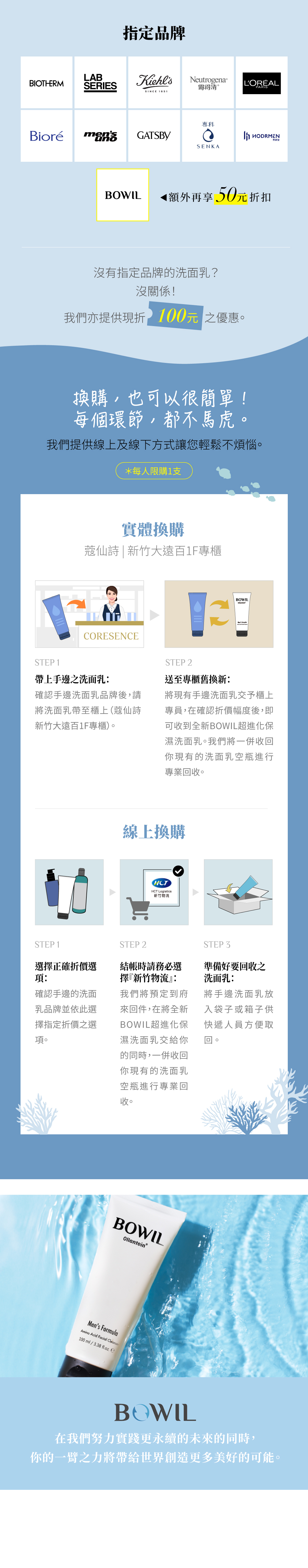 選擇手中空瓶洗面乳的品牌,交給我們進行專業回收,即可享受以下折扣: